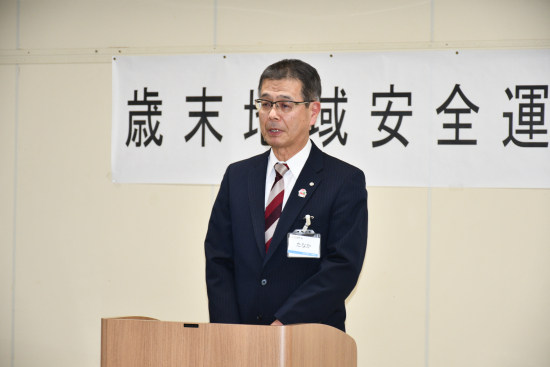 町地域安全推進協議会(池下藤吉郎会長)などで行う、歳末地域安全運動の出発式に出席しました。年末年始の、防犯対策等を町民の皆さんに呼び掛けるものです。池下会長は「飲酒運転、トラブルに気を付けて」とあいさつされました。