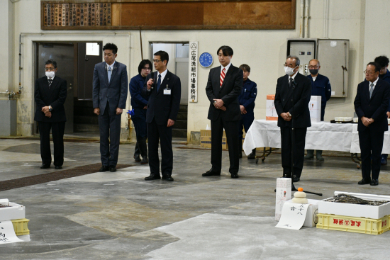 広尾漁業協同組合(亀田元教組合長)の令和8年初競りに出席しました。亀田組合長は「仲買人の方々と漁組が連携し、広尾の海産物流通をさらに広げたく、今後とも皆様のご協力を」とあいさつされました。