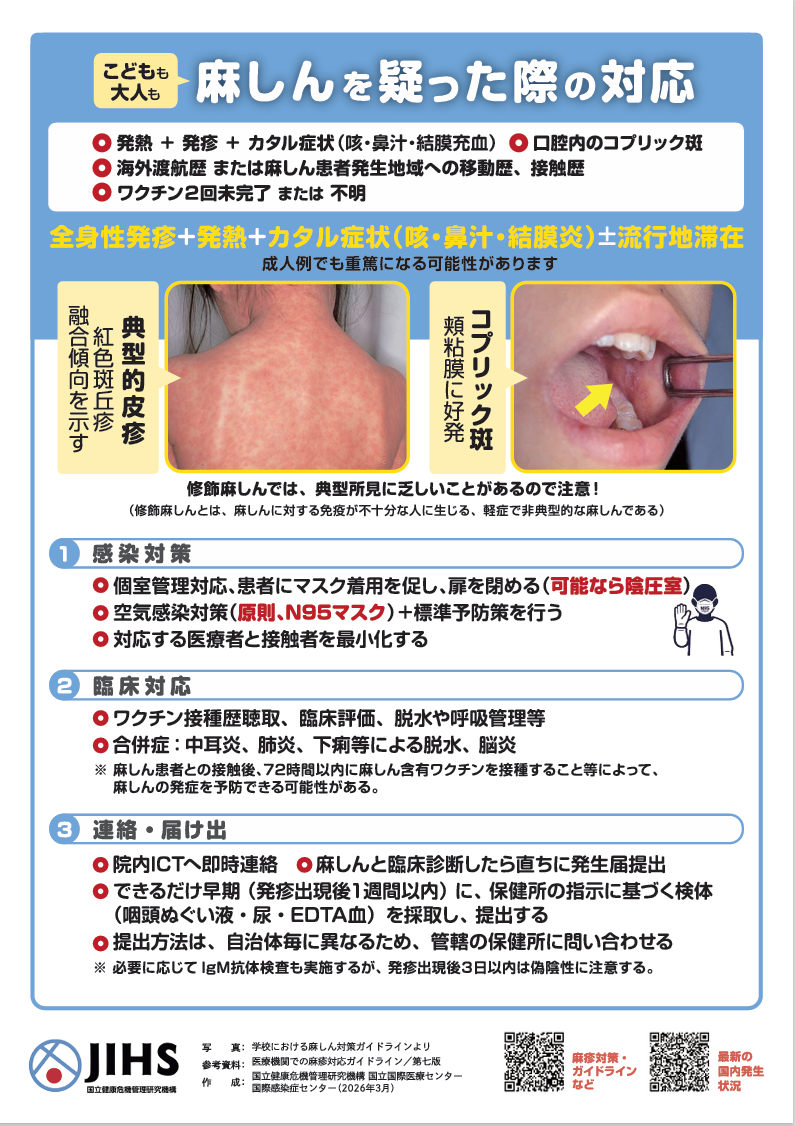 麻しんは海外における流行が報告されており、国内においても、海外からの輸入症例を契機とした感染事例が報告されています。