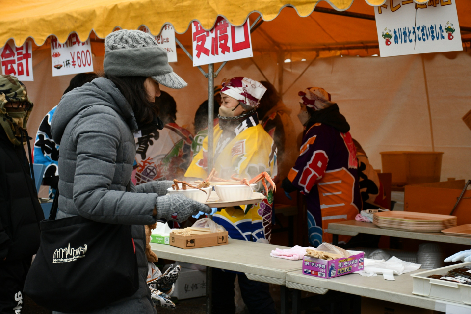 「広尾毛がにまつり」が12月14日にシーサイドパーク特設会場で開催、町内外から約8,000人の来場者が訪れました。当日は朝早くから、毛がに大釜茹でにたくさんの行列ができるなど、広尾町の冬の味覚のほか、交流自治体の長崎県西海市の美味しいみかんや、芽室町のメムロフランンクなど特産品を買い求めました。また恒例の「毛がに早食い競争」「特産品抽選会」などの催しで会場は盛り上がりました。